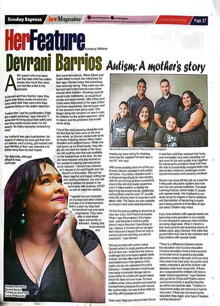 Mrs. Devrani Nadia Barrios, Principal of Focused Learning Institute, has dedicated her career to transforming education in Trinidad and Tobago. As both an educator and the mother of two autistic boys, she brings a unique blend of professional expertise and personal experience to her leadership. Driven by her passion for literacy and inclusive education, she authored Foundation Readers—a groundbreaking series designed to support children with reading difficulties, autism, ADHD, and dyslexia. Her mission is clear: to empower every child to reach their fullest potential by creating innovative tools, nurturing environments, and equitable learning opportunities for all.