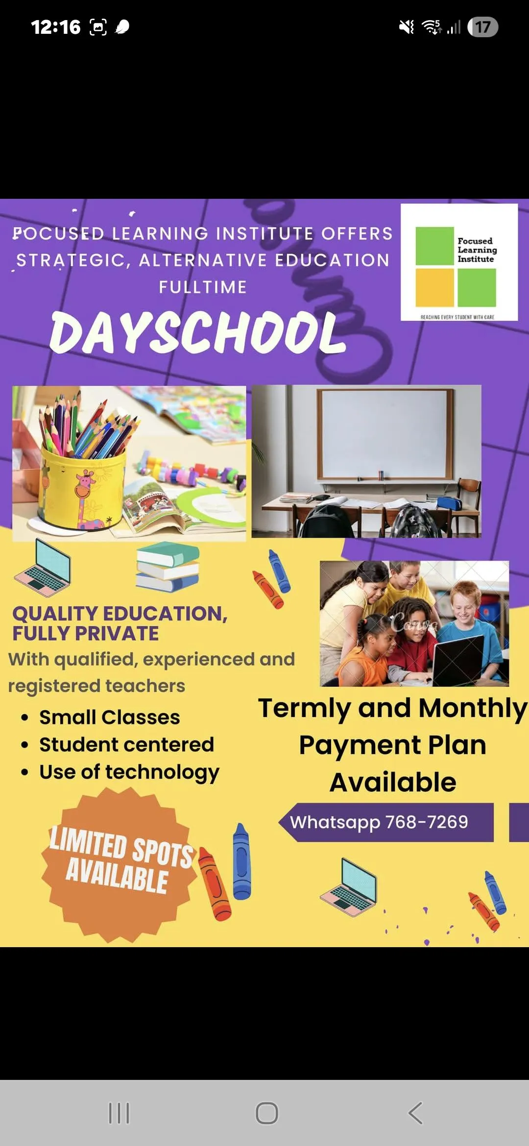 I love Focused Learning Institute it is an amazing school. I started doing better when I came there Because when I was in my old school it was torture in that school. My standard 4 teacher never used to correct books and not even explain what to do when she gave us assignments but now as I am here in Focused Learning Institute with Mrs Barrios , Sir and the other teachers. I am loving this school so much and it makes me feel like I never want to stay home ever again. This So Much Deserves A 5 STAR REVIEW.